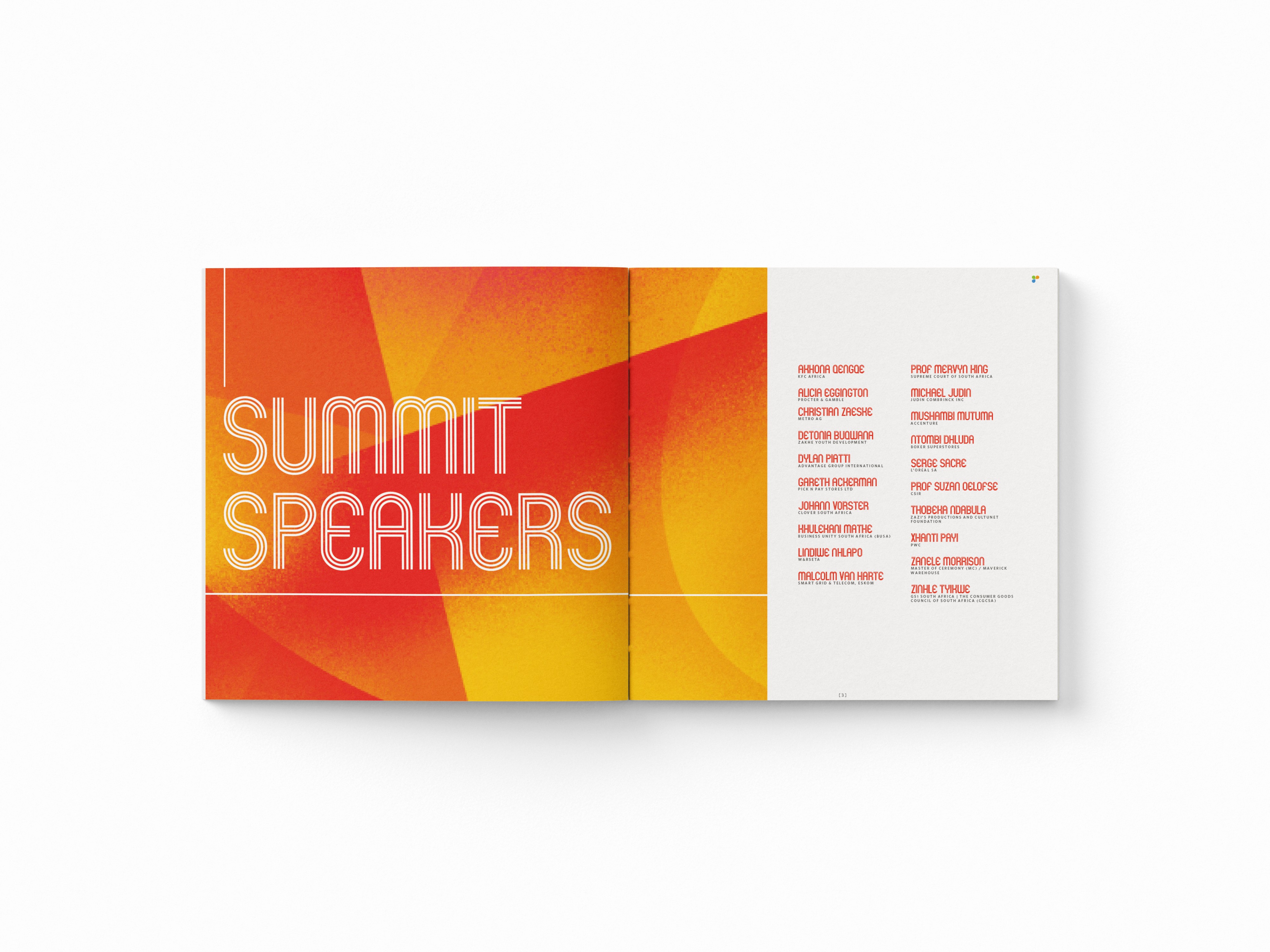 To elevate the experience, I led a full redesign of the summit booklet. Content was reimagined to spotlight key insights, transforming the agenda into editorial-style features like “10 Trends Reshaping African Retail.” The visual system embraced bold, African-inspired aesthetics, paired with rich data visualisations to engage attendees. QR codes introduced interactivity, linking to speaker interviews and podcast snippets. Sponsor placements were restructured as strategic content partnerships rather than passive advertisements.